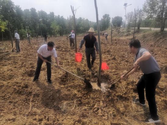 其后,大家來到公司位于浮山村苗圃的幫扶林,領(lǐng)導(dǎo)和公司黨員們一起,兩人一組將從農(nóng)戶新采購(gòu)的苗木種植到位。大家有的扶樹正苗,有的揮鍬培土,有的踩土定植,配合十分默契,不一會(huì)苗圃基地再添一抹新綠。