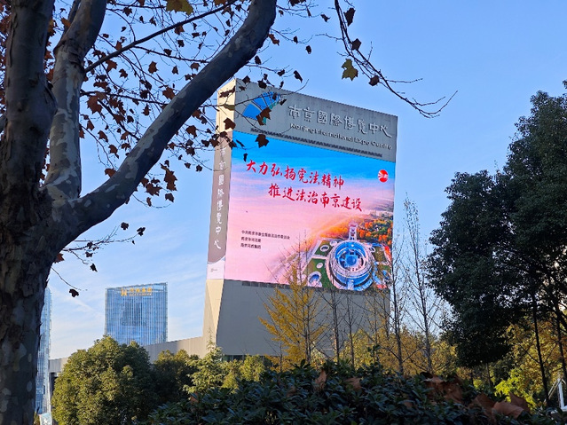 憲法是國家的根本大法,是治國安邦的總章程。今年12月4日是第十個國家憲法日,12月4日所在的周是第六個“憲法宣傳周”。為深入學(xué)習(xí)宣傳貫徹習(xí)近平法治思想,著力營造學(xué)習(xí)宣傳憲法的濃厚氛圍,弘揚憲法精神,維護憲法權(quán)威,集團充分借力戶外大屏媒介載體進行普法宣傳,會展、公園、酒店等板塊根據(jù)集團部署聯(lián)運同步點亮“大力弘揚憲法精神、推進法治南京建設(shè)”宣傳標(biāo)語,利用各類公共場所電子顯示屏滾動播放,使憲法宣傳走進千家萬戶。