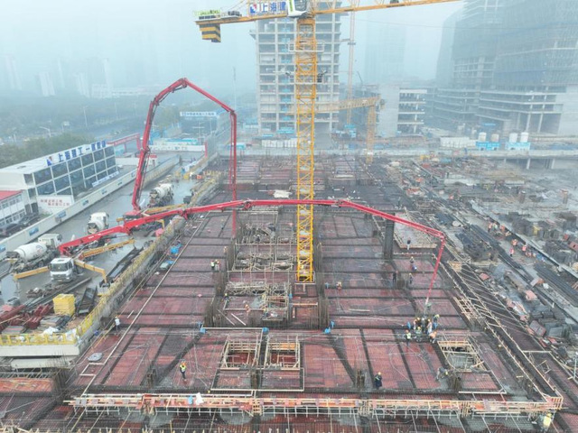 1月3日,河西金融中心項(xiàng)目塔樓及裙樓正負(fù)零板澆筑完成,比原計(jì)劃提前了75天。為了確保工程進(jìn)度,項(xiàng)目人員加班加點(diǎn),節(jié)假日仍堅(jiān)守崗位,運(yùn)輸車、塔吊和汽車泵等各種施工機(jī)械緊張作業(yè),仿佛在進(jìn)行一場(chǎng)與時(shí)間賽跑的“戰(zhàn)斗”,最終保證了澆筑工作順利完成。